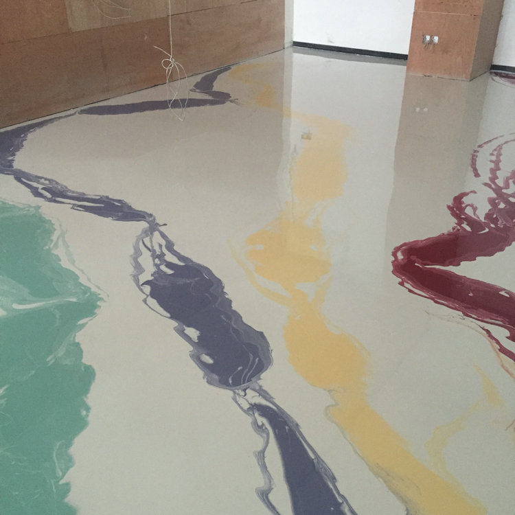 2、水泥基彩色自流平+透明無溶劑環(huán)氧樹脂自流平